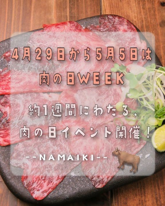 《本日4/29~5/5》を【肉の日WEEK】とし、