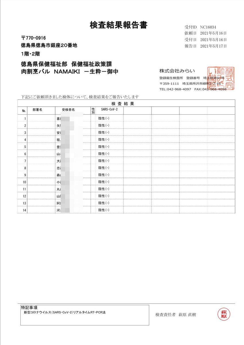 この度、感染拡大防止で繁華街の飲食店を対象としたPCR検査を全スタッフで受けました🐮
